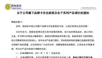 關(guān)于公司屬下品牌卡芬達家居及各子系列產(chǎn)品調(diào)價的通知