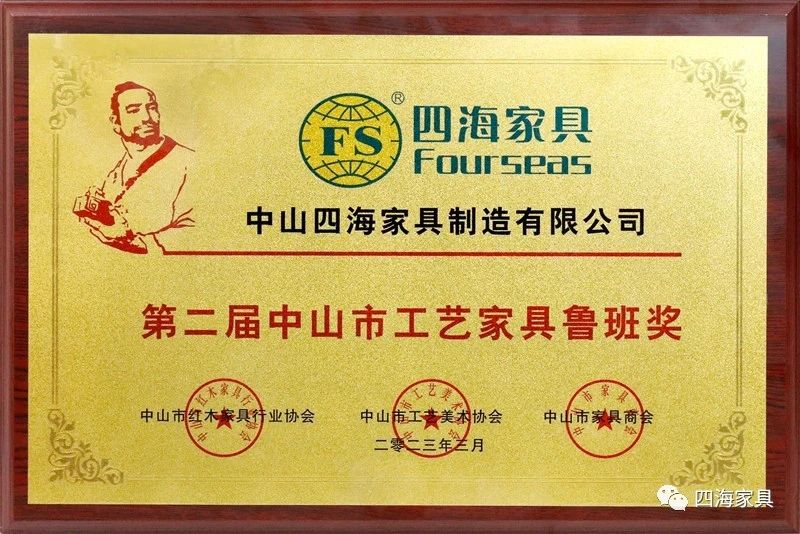 弘揚工匠精神,樹立標桿企業(yè)——由中山市家具商會、中山市工藝美術協(xié)會和中山市紅木家具行業(yè)協(xié)會共同舉辦的第二屆“中山市家具行業(yè)工藝家具魯班獎”,四海家具匠心出品,以“優(yōu)秀的設計、精湛的工藝、優(yōu)良的品質”得到專家評委的一致認可,再次榮獲“中山市工藝家具魯班獎”。